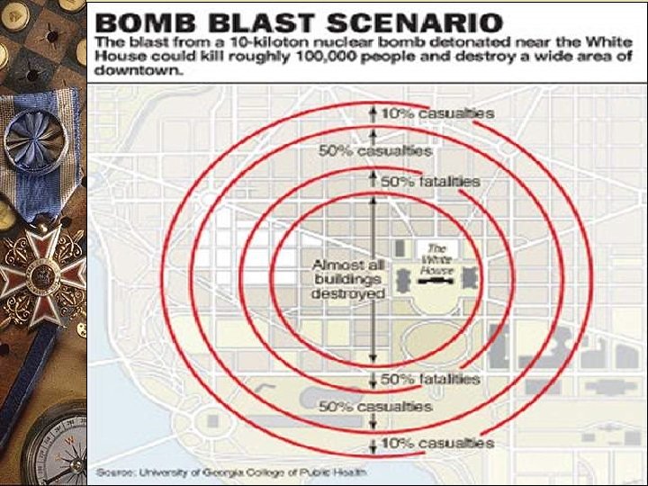 HIGH FATALITY DOMAINS w There is a combination of blast, thermal and prompt nuclear radiation that creates an inner zone around the nuclear explosion, out to distances of – 1. 5 km for a 10 -20 Kt weapon – 3. 5 km for a 200 Kt weapon w Analysis shows that for people unfortunate enough to be within this inner circle and exposed to the full impact of the explosion, there is no defense R RAJARAMAN, Z MIAN, A H NAYYAR Economic and Political Weekly November 20, 2004