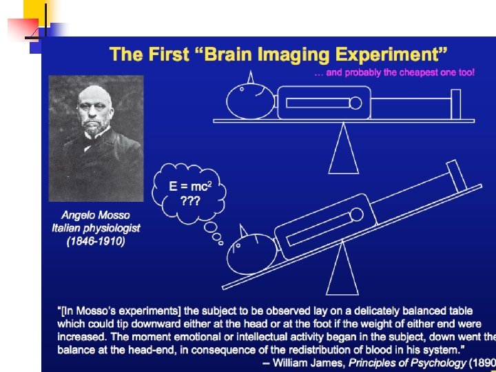 La primera coneccion entre flujo sanguineo y actividad mental Veber den Kreislauf des Blutes in Menschlichen Gehirn (Concerning the circulation of the blood in the human brain) Verlag von Viet & Company: Leipzig, 1881 Inventor del primer ergografo para medir la fuerza muscular Angelo Mosso
