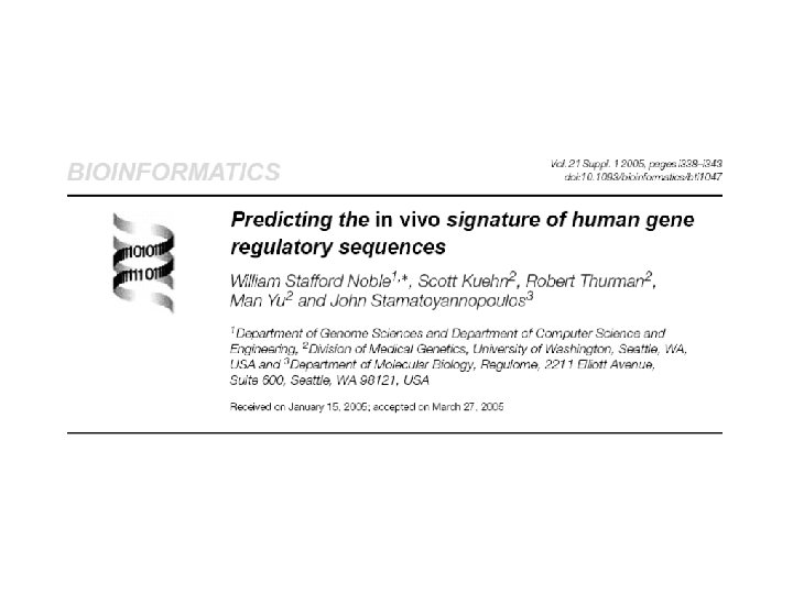 Computational analyses of yeast and human chromatin William Stafford Noble Department of Genome Sciences Department of Computer Science and Engineering University of Washington