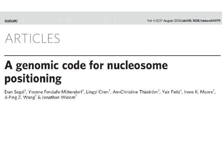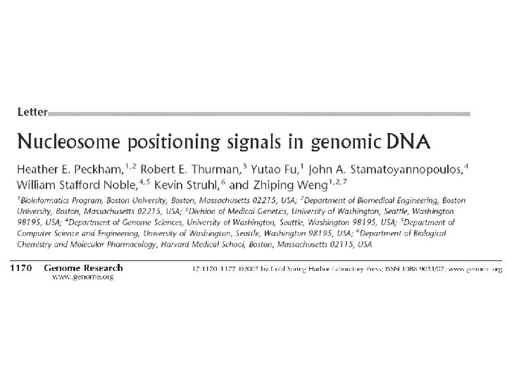 Outline • Sequence-based models of nucleosome positioning • Footprinting protein binding sites genomewide