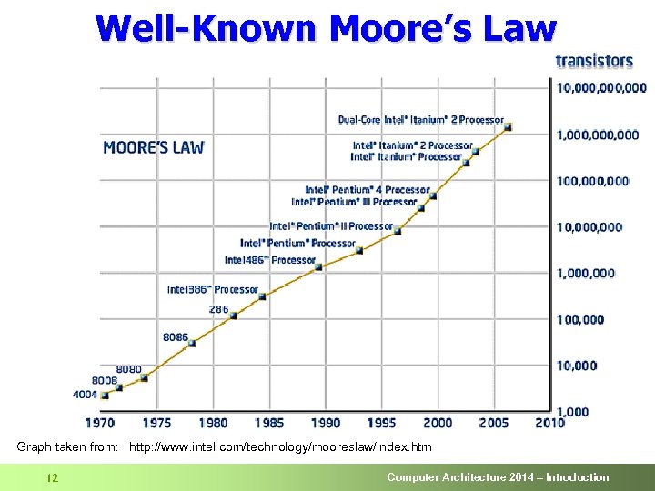 Well-Known Moore’s Law Graph taken from: http: //www. intel. com/technology/mooreslaw/index. htm 12 Computer Architecture 2014 – Introduction