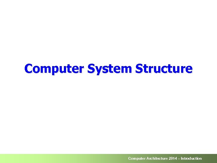 Computer System Structure Computer Architecture 2014 – Introduction
