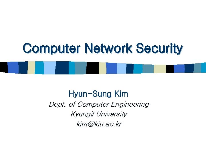 Computer Network Security Hyun-Sung Kim Dept. of Computer Engineering Kyungil University kim@kiu. ac. kr