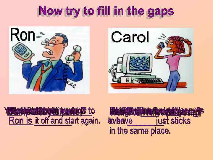 Make sure you’ve guessed correctly The problem. to. Ion? No bestthe problem? Yes, is it thing How exactly? Whatthat’s what do Computer Helpline, is do. is getting would to switch it off and Ron is speaking. try again. OK. I’llmy computer It’s you Thankstry help? Well, I can’tisme? . anything a Do you. Who ititspeaking? , Can OK. thinkmovelot. Hello! give a will Well, help even the cursorcrashed! seems to have just sticks in the same place.