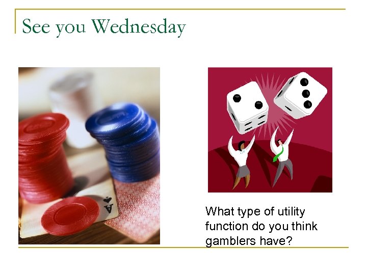 See you Wednesday What type of utility function do you think gamblers have?