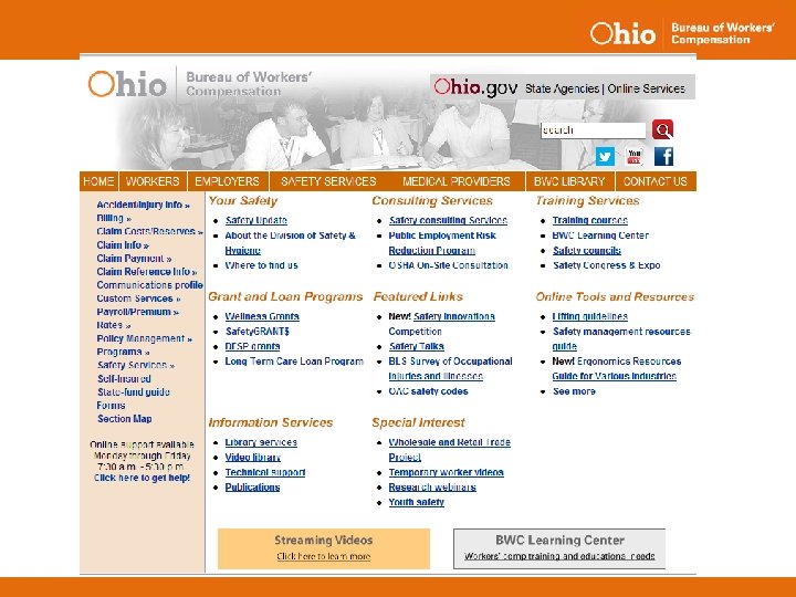 BWC Services o Training Services • Training Courses • Learning Center o Information Services • Library Services • Video Library • Publications