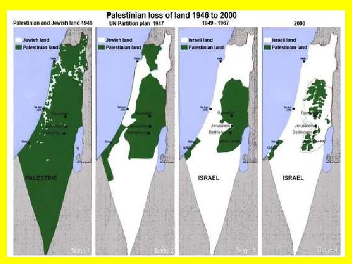 ¿Qué quieren los palestinos? En términos generales, los árabes palestinos quieren que: • Israel les permita tener un estado independiente y autónomo. • Garantías para que la nación palestina pueda desarrollarse económicamente • Salgan las fuerzas de Israel de los territorios ocupados en 1967 • Se desmantelen los asentamientos judíos (más de 200 mil habitantes) de sus territorios • Quede bajo su jurisdicción la zona este de Jerusalén, barrio musulmán • Regresen los refugiados palestinos que se encuentran en otros países árabes, especialmente en Jordania y Líbano