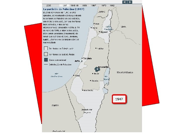 orígenes del conflicto • El conflicto se remonta a 1947, cuando Gran Bretaña decide abandonar Palestina —donde ya existían enfrentamientos entre los autóctonos y los judíos que se habían ido asentando allí con la esperanza de crear un «hogar nacional» —