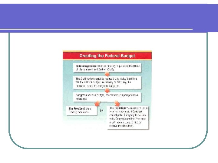 Rider l Attached to a bill likely to pass l Provision on a subject other than the one covered in the bill l Can cause a president to veto a bill