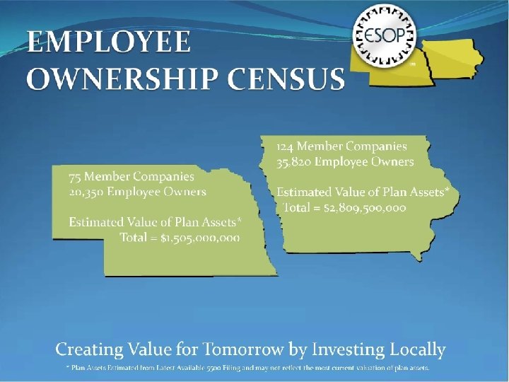 Agenda: • Who are your Congressmen and Senators? – How do you contact them? • Do you know your Congressional districts? – Why is that important? • What do they know about ESOPs? – What is there position on ESOPs? – Shared capitalism is a significant part of the U. S. economic model • What do they know about your company? – ESOP History & culture • How do you get them to visit your company? – What to do when you get them there?