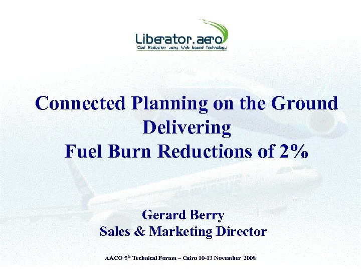 Connected Planning on the Ground Delivering Fuel Burn Reductions of 2% Gerard Berry Sales & Marketing Director AACO 5 th Technical Forum – Cairo 10 -13 November 2008