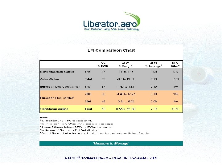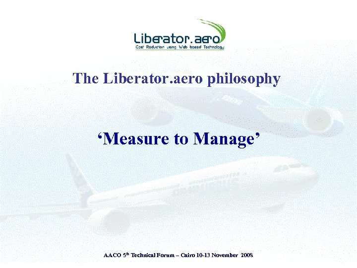 The Liberator. aero philosophy ‘Measure to Manage’ AACO 5 th Technical Forum – Cairo 10 -13 November 2008