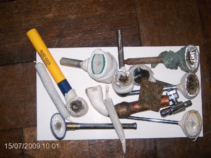 ØPupilas dilatadas. Uso freqüente de colírio e óculos escuros, mesmo sem necessidade. Ø Existência de cachimbos, grampos, canivetes ou colheres queimadas, papel para cigarro, sementes nos cinzeiros. Uso de desodorante ou incenso no quarto. ØAspecto desleixado. Ausência na escola. Notas baixas;