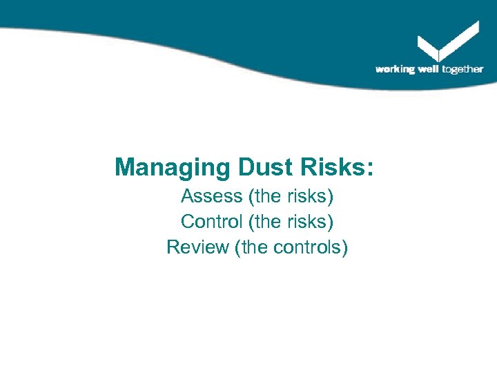 Managing Dust Risks: Assess (the risks) Control (the risks) Review (the controls)