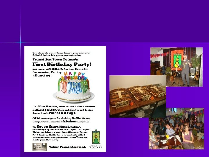 Alguns dos outros resultados… n n n O desafio dos Sistemas de Aqecimento de Agua Solares A empresa de fornecimento de energia renovavel de Totnes ( Totnes Renewable Energy Supply Company, ou ‘TRESCO’) World Café com representantes do governo local ‘Domingo das Sementes’ Biblioteca publica Workshops
