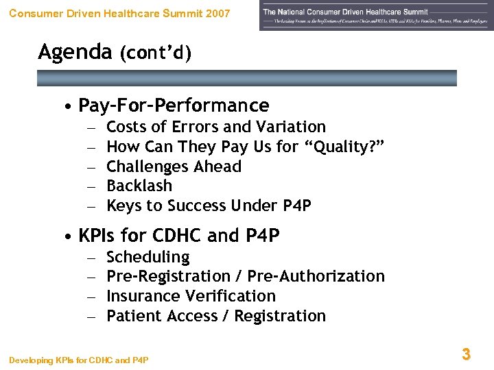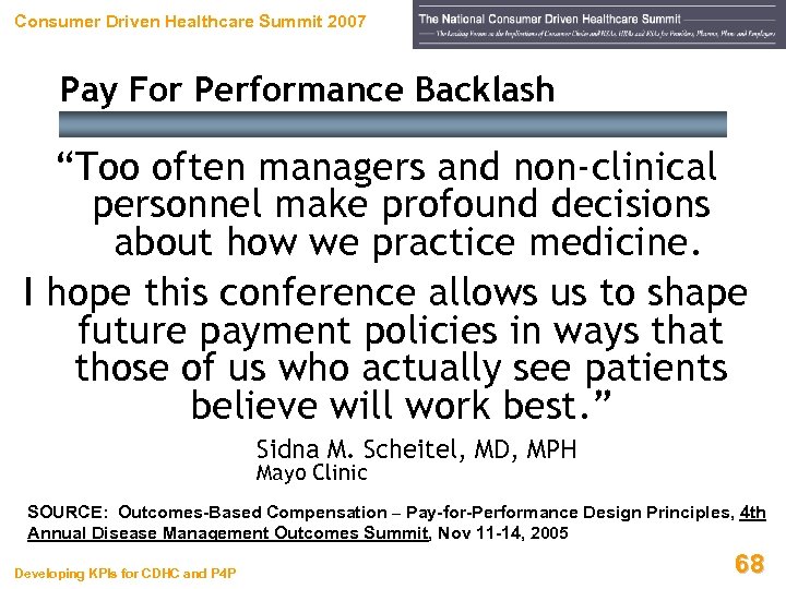 Consumer Driven Healthcare Summit 2007 Pay for Performance Backlash Developing KPIs for CDHC and P 4 P 67