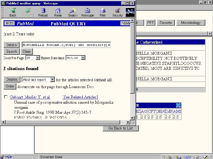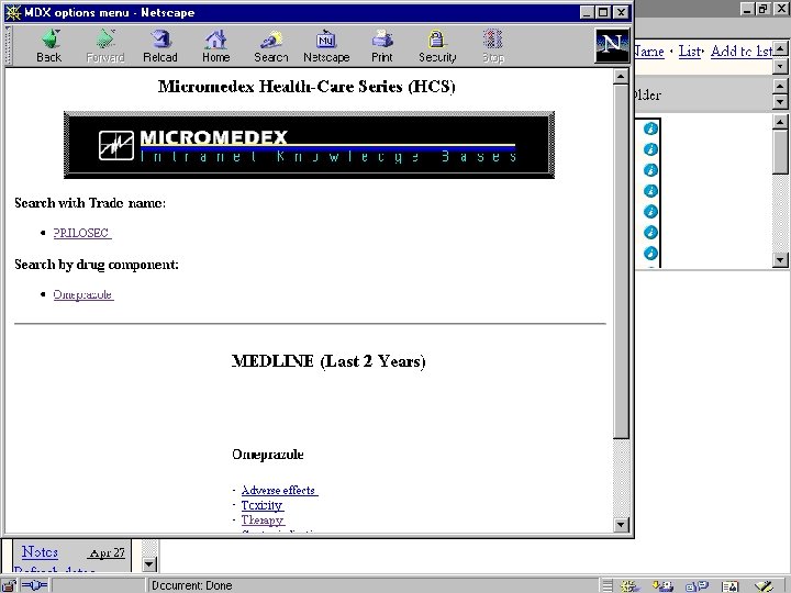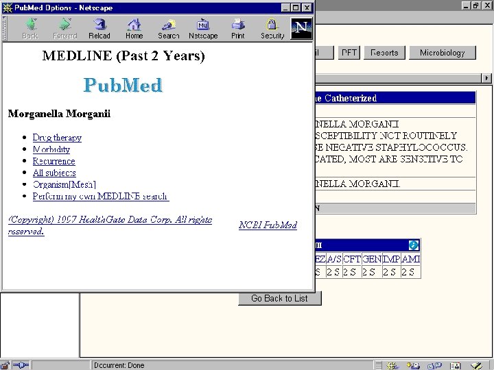 Linking to On-line Resources with Terminology l Clinician reviewing reports will have information needs l On-line information sources can satisfy that need l Data from report can be used to automate the query
