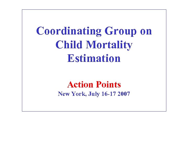 Coordinating Group on Child Mortality Estimation Action Points New York, July 16 -17 2007