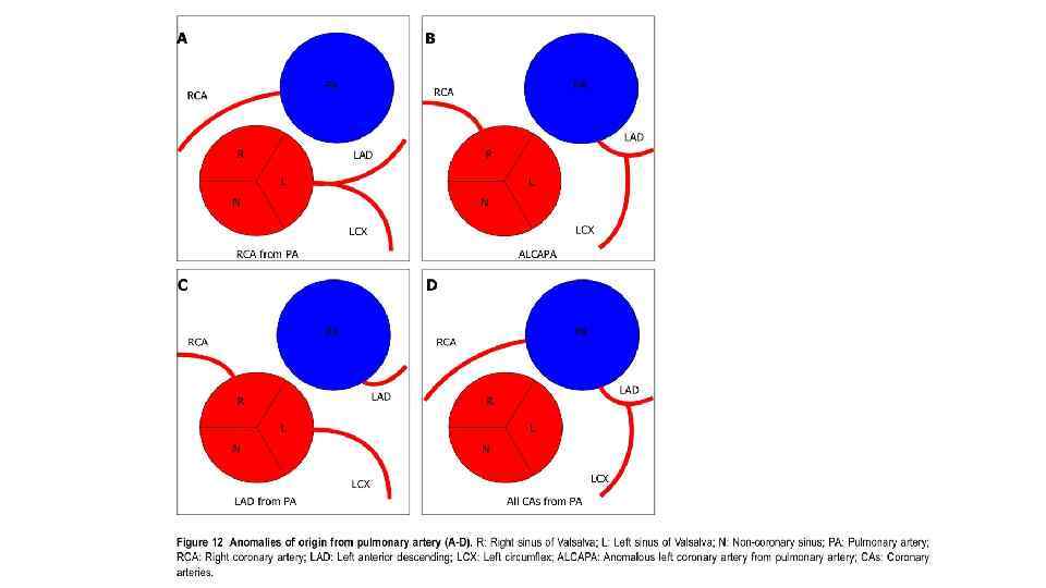 Врожденное отсутствие коронарных артерий • Отсутствие LMCA (раздельное начало LAD и LCX). • Атрезия LMCA • Врожденное отсутствие LCX