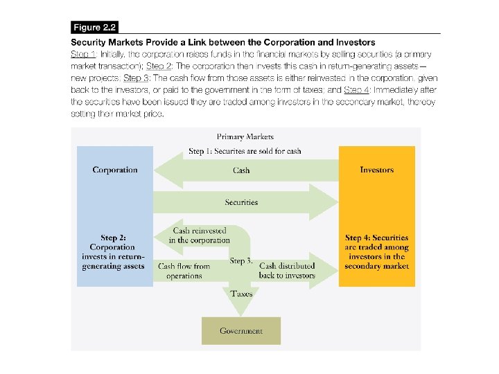Types of Securities: Debt securities • Debt Securities: Firms borrow money by selling debt securities in the debt market. – If the debt has a maturity of less than one year, it is typically called notes, and is traded in the money market. – If the debt has a maturity of more than one year, it is called bond and is traded in the capital market. • Most bonds pay a fixed interest rate on the face or par value of bond. • Example: A bond with a face value of $1, 000 and semi-annual coupon rate of 9% will pay an interest of $45 every 6 months or $90 per year, which is 9% of $1, 000. When the bond matures, the owner of the bond will receive $1, 000.