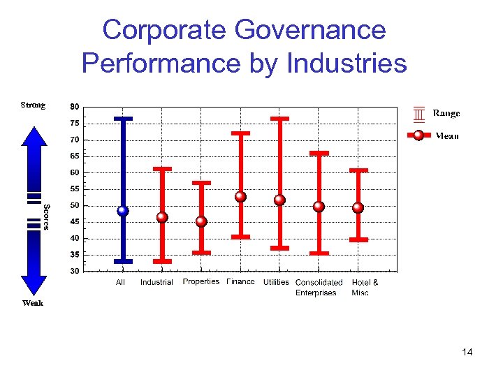 Corporate Governance Performance by Indices Strong Weak HSI (恒生指數) HSHKCI (恒生香港綜合指數) HSCEI (恒生中國企業指數) HSCCI (恒生香港中資企業指數) 13