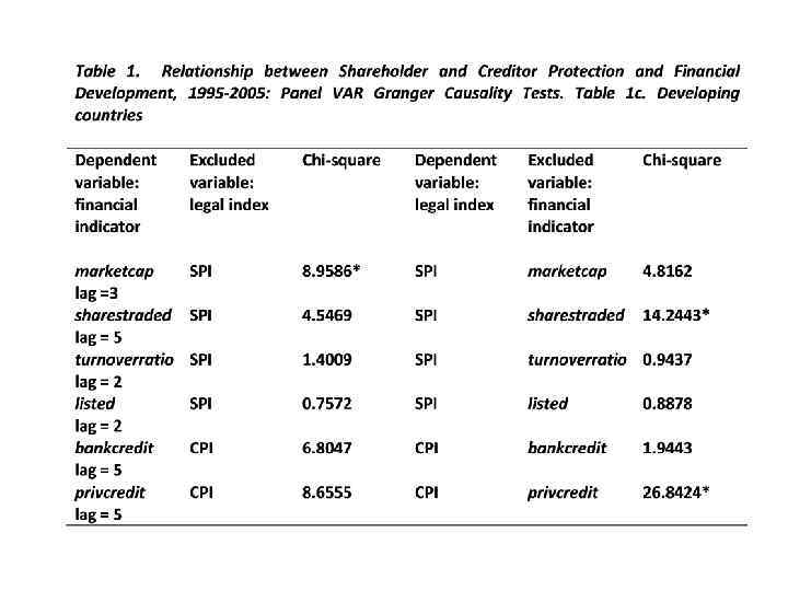 New evidence on law and financial development • The datasets constructed by LLSV are deficient in presenting only a cross-sectional view of differences in the law across countries, as well as suffering from some coding errors • The development of more recent, longitudinal datasets by the CBR (Cambridge Centre for Business Research) makes it possible to introduce time-series element into the analysis of law and financial development: http: //www. cbr. cam. ac. uk/research/programme 2/proj ect 2 -20 output. htm • SPI and CPI, 25 countries, 1995 -2005
