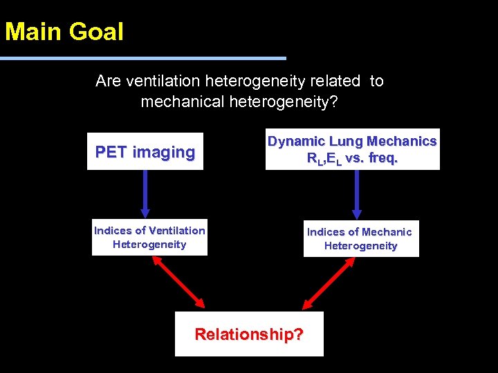 Main Goal l Are ventilation heterogeneity related to mechanical heterogeneity? PET imaging Dynamic Lung Mechanics RL, EL vs. freq. Indices of Ventilation Heterogeneity Relationship? Indices of Mechanic Heterogeneity