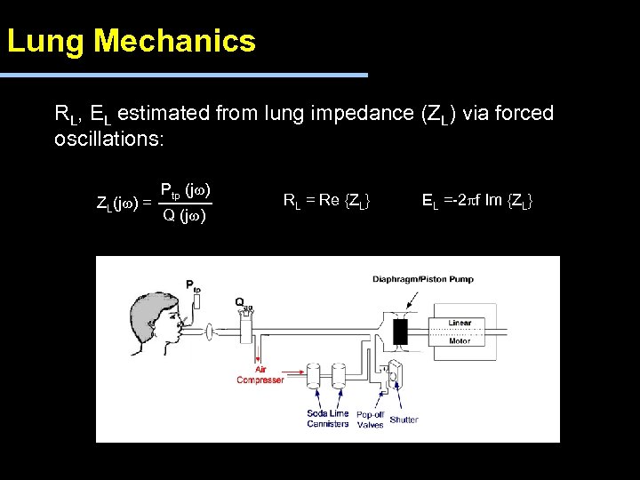 Lung Mechanics RL, EL estimated from lung impedance (ZL) via forced oscillations: ZL(jw) = Ptp (jw) Q (jw) RL = Re {ZL} EL =-2 pf Im {ZL}