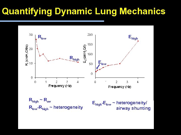 Quantifying Dynamic Lung Mechanics Rlow Ehigh Rhigh ~ Raw Rlow-Rhigh ~ heterogeneity Elow Ehigh-Elow ~ heterogeneity/ airway shunting