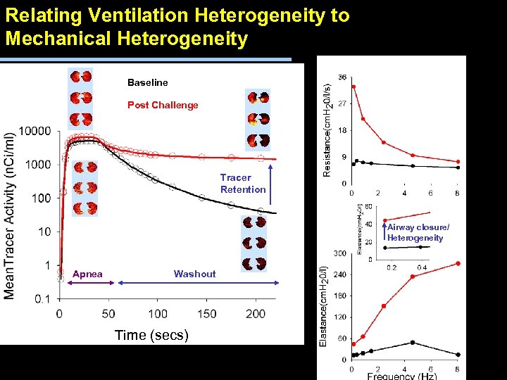 Relating Ventilation Heterogeneity to Mechanical Heterogeneity Baseline Post Challenge Tracer Retention Airway closure/ Heterogeneity Apnea Washout Time (secs)
