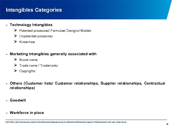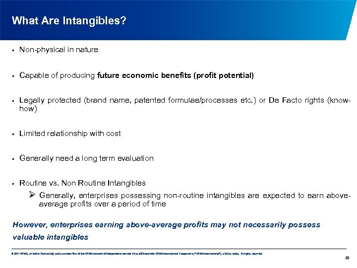 Intangibles © 2011 KPMG, an Indian Partnership and a member firm of the KPMG network of independent member firms affiliated with KPMG International Cooperative (“KPMG International”), a Swiss entity. All rights reserved. 27