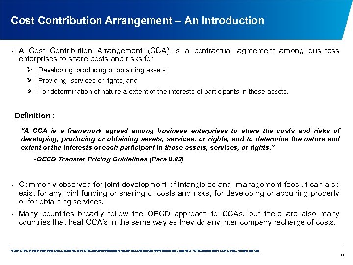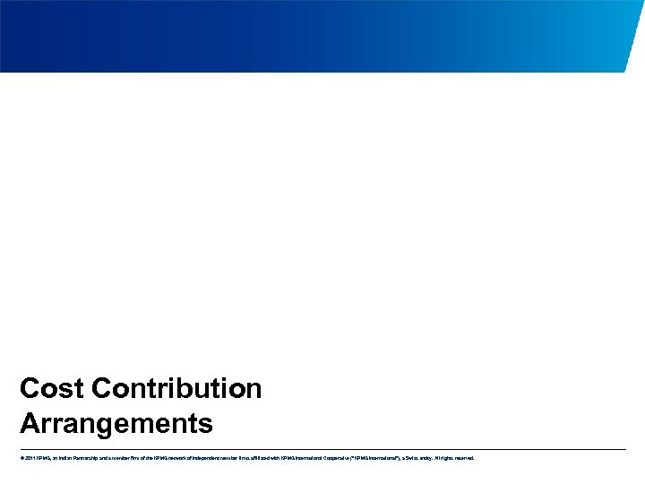 Cost Contribution Arrangements © 2011 KPMG, an Indian Partnership and a member firm of the KPMG network of independent member firms affiliated with KPMG International Cooperative (“KPMG International”), a Swiss entity. All rights reserved.