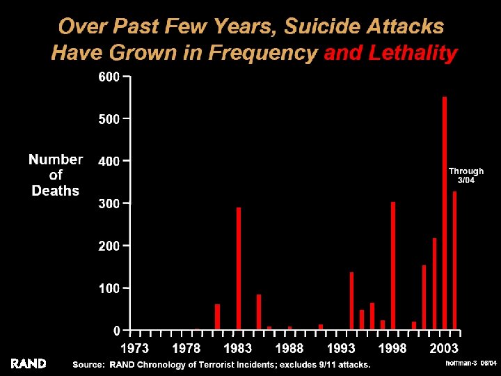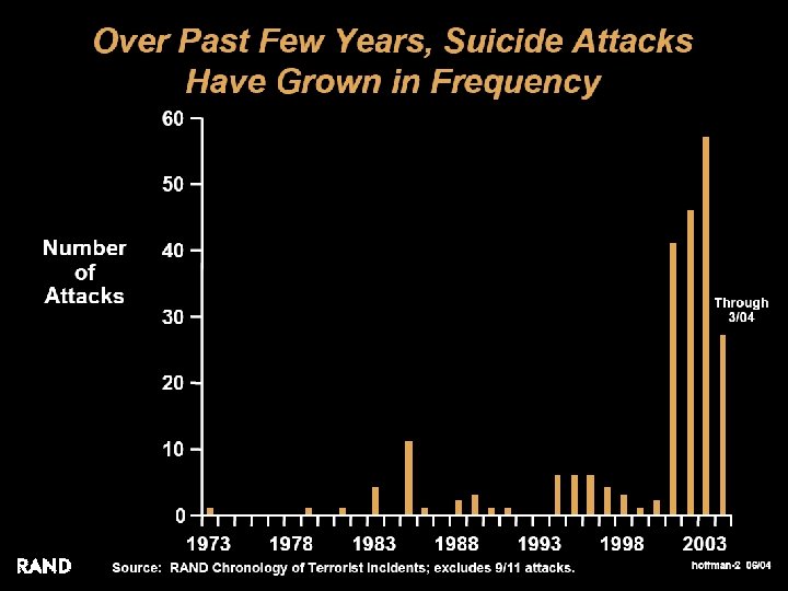 Suicide Terrorism: Why? Perception: Reality • Seemingly irrational act • Part of a strategy that is: – Well planned – Logical – Designed to achieve specific political objectives • Suicide attacks have increased over the past two decades • Why? COMBATING TERRORISM CENTER at West Point • Does two things: – Inflicts immediate punishment against target society – Threatens more punishment in the future