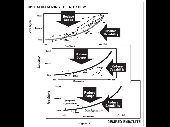 Military Strategic Framework for the GWOT Ends Strategic Goal: Preserve and promote the way of life of free and open societies based on the rule of law, defeat terrorist extremism as a threat to our way of life, and create a global environment inhospitable to terrorist extremists. END-STATE Termination Objectives from the Contingency Planning Guidance (Classified) Ideological support Comms & Movement Ways Military Strategic Objectives Protect the Homeland Funds Safe havens Enemy Leadership Weapons Foot soldiers Access to Targets Disrupt and Attack Terrorist Networks Counter Ideological Support for Terrorism Deny terrorists the resources they need to operate and survive. Enable partner nations to counter terrorism. Deny WMD/E proliferation, recover and eliminate uncontrolled materials, and maintain capacity for consequence mgmt. Defeat terrorists and their organizations. Persuade, coerce, and when necessary, compel states and non-states to cease support for terrorists. Establish conditions that counter ideological support for terrorism. COMBATING TERRORISM CENTER at West Means Point Combatant Commands, Services, and Combat Support Agencies