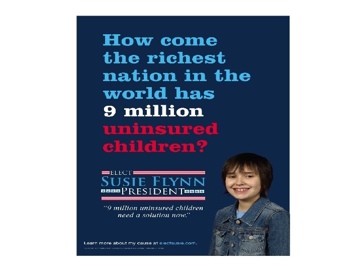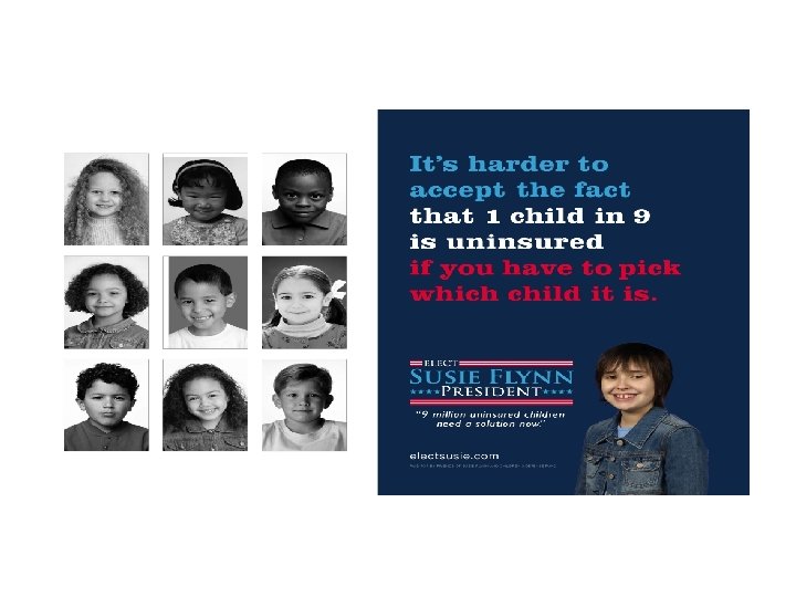 WHO ARE THE UNINSURED? • There are 77. 9 million children in America. • 9 million children—about 11. 2% of all American children—are uninsured.