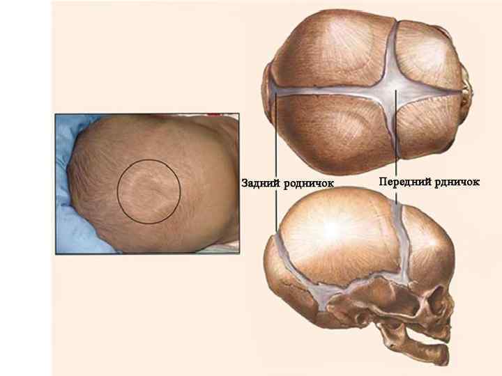 Некоторые краевые участки костей не окостеневают к моменту родов и представлены по-прежнему пластинками соединительной, или перепончатой, ткани. Таковыми оказываются участки в местах соединения нескольких костей, они-то и называются родничками. К моменту рождения у малыша, как правило, имеется шесть родничков — два непарных и два парных.