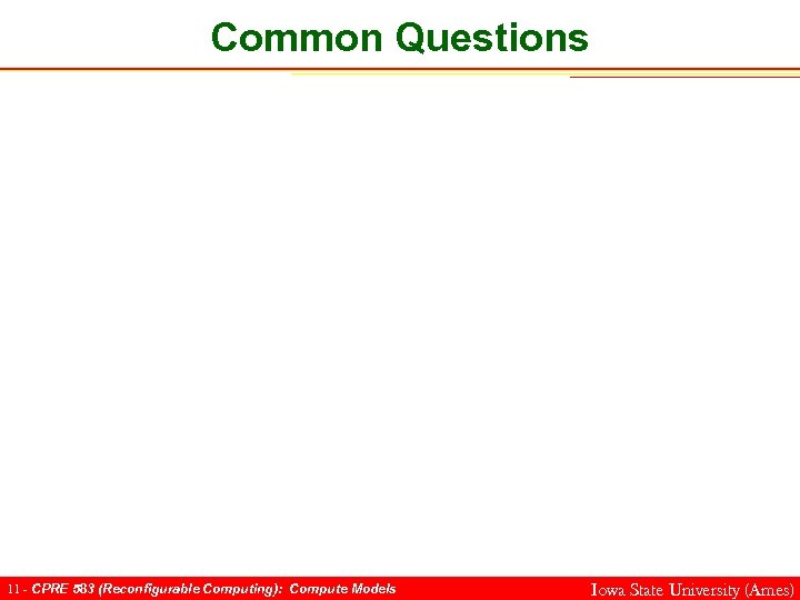 Common Questions 11 - CPRE 583 (Reconfigurable Computing): Compute Models Iowa State University (Ames)