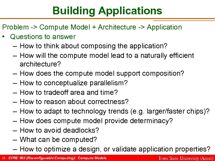 Common Questions 12 - CPRE 583 (Reconfigurable Computing): Compute Models Iowa State University (Ames)