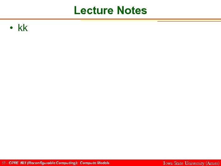 Lecture Notes • kk 57 - CPRE 583 (Reconfigurable Computing): Compute Models Iowa State University (Ames)