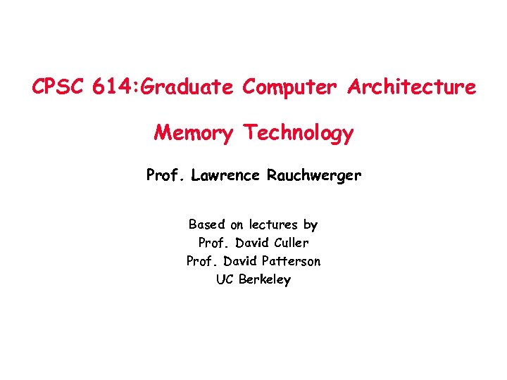 CPSC 614: Graduate Computer Architecture Memory Technology Prof. Lawrence Rauchwerger Based on lectures by Prof. David Culler Prof. David Patterson UC Berkeley