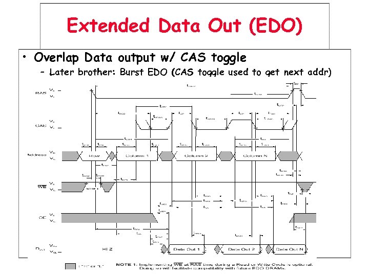 Extended Data Out (EDO) • Overlap Data output w/ CAS toggle – Later brother: Burst EDO (CAS toggle used to get next addr)