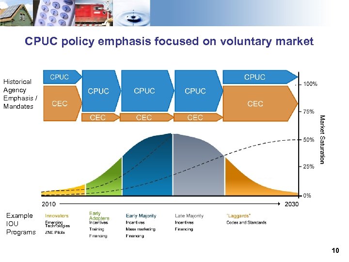 CPUC policy emphasis focused on voluntary market Historical Agency Emphasis / Mandates Example IOU Programs 10