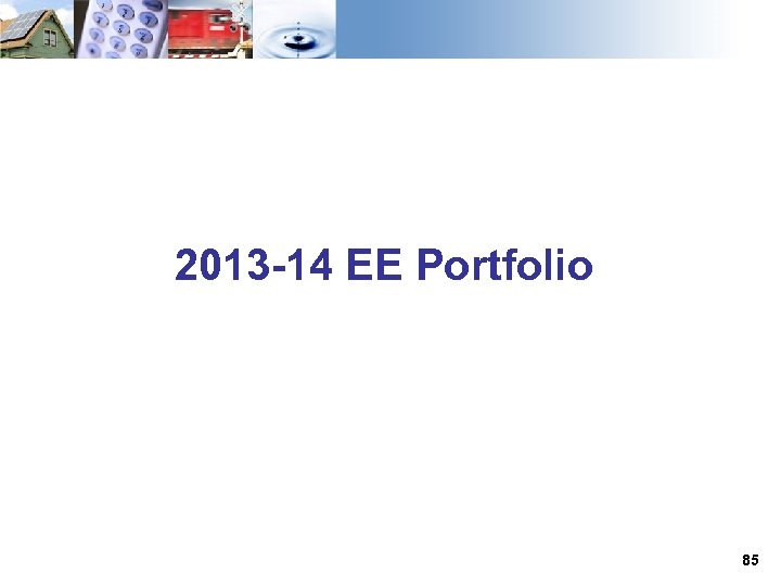 Regulatory History of CPUC EE Programs Post -Deregulation – Energy Crisis / CPUC administration of EE programs • 2000: Commission responds to the energy crisis by adopting the Summer Initiative programs to run in parallel with the utility PGC programs – allocating $72 million in unspent funds from prior years – The Commission allowed non-utilities to propose programs – Energy Division staff selected programs • 2001: Legislature recognizes the importance of energy efficiency in addressing the energy crisis by appropriating $97 million from General Fund to the Commission for energy efficiency programs in SBX 1 -5 – Energy Division staff managed contracts with large and small utilities, cities and companies • 2002 -2003: Commission made $104 million available to non-utility programs – Continued the process of Energy Division proposal review and program management of non-utility programs begun by the Summer Initiative and SBX 1 -5 84