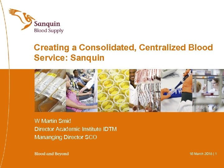 Creating a Consolidated, Centralized Blood Service: Sanquin W Martin Smid Director Academic Institute IDTM Mananging Director SCO 16 March 2018 | 1