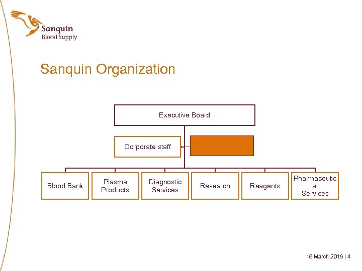 Sanquin Organization Executive Board Corporate staff Blood Bank Plasma Products Diagnostic Services Research Reagents Pharmaceutic al Services 16 March 2018 | 4