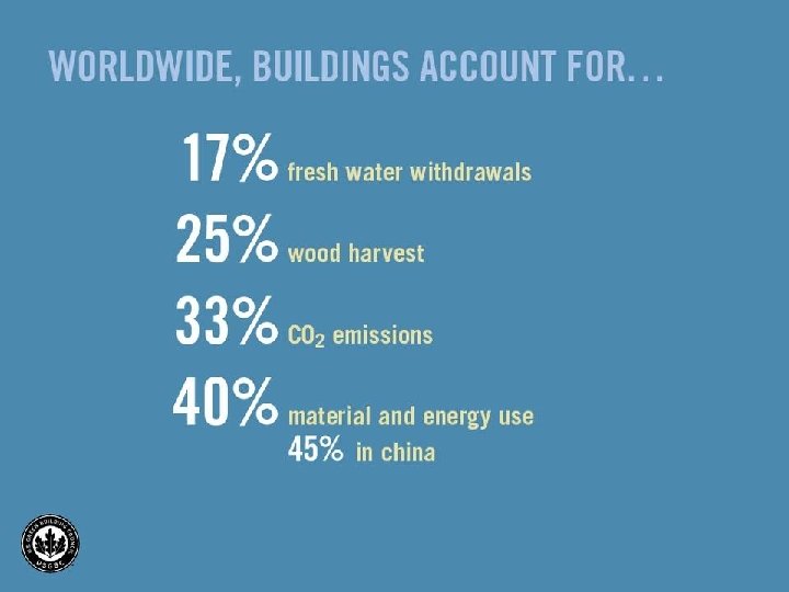 LEED for new construction buildings as of 07/06 480 186 23 (DE) 24 (NH) 134 174 9 11 AK=10 HI=16 PR=1 200+ 100 -199 50 -99 20 -49 1 -19 Distribution by geography 4 22 11 9 120 23 40 28 69 79 68 14 8 82 173 119 36 25 125 5 (OK) 57 4 74 11 22 19 102 52 18 6 6 Test 12 95 19 33 105 73 61 27 9 (DE) 38 (DC)