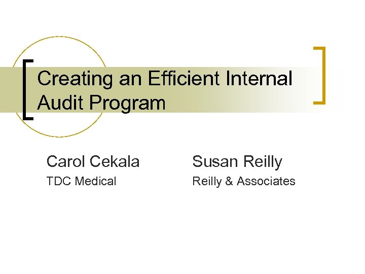 Creating an Efficient Internal Audit Program Carol Cekala Susan Reilly TDC Medical Reilly & Associates