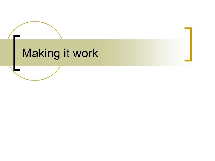Making it work