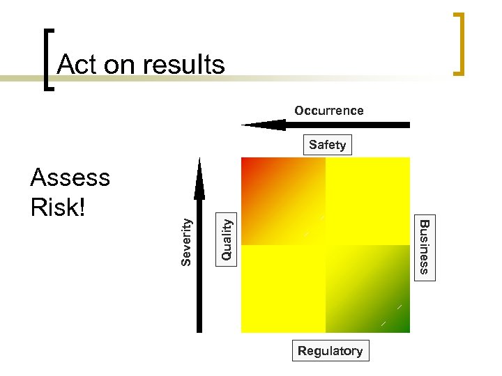 Act on results Occurrence Quality Business Assess Risk! Severity Safety Regulatory