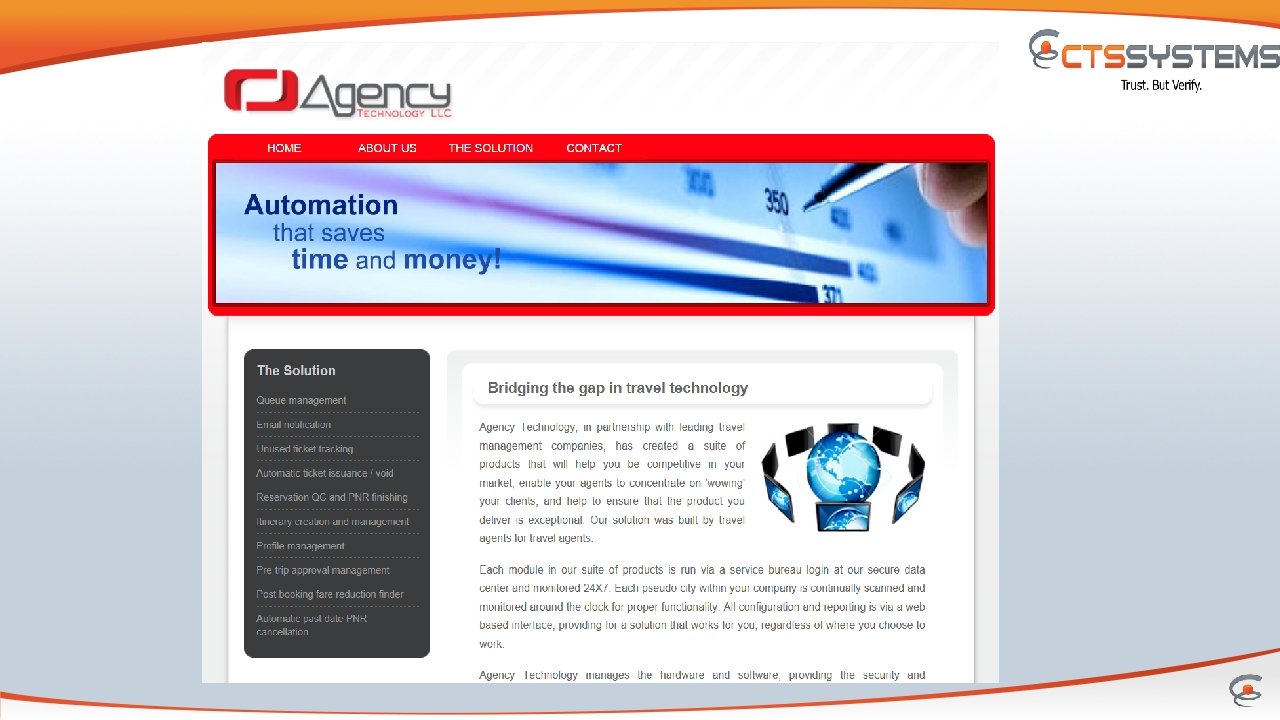 Who is CTS Systems v. Led by a seasoned executive team with cross-discipline expertise in all areas of travel technology v. Relationships with over 9, 000 independent hotels world-wide v. Continual innovation of new products and services v. Long-standing travel industry alliances and technology partnerships v. Growing strategic partner and channel network